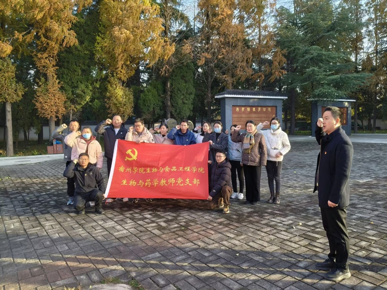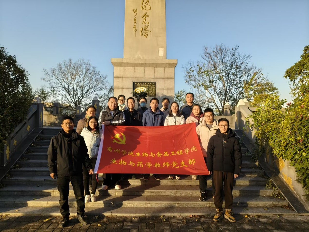 为回顾党的辉煌历史,继承和发扬党的辉煌传统和优良作风,进一步增强党的凝聚力和战斗力,鼓励党员坚定理想信念,忠于初衷,牢记使命。在党委的安排部署下,11月27日,生物与药学教研室教师党支部组织全体党员前往宿州市埇桥区朱仙庄镇大张村宿东烈士陵园开展“缅怀革命先烈,传承红色精神”主题党日活动。