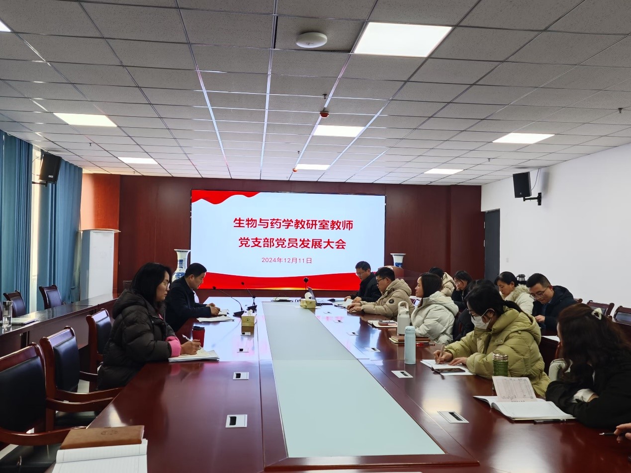 2024年12月11日下午15:00,生物与药学教研室教师党支部在实训楼会议室A1105顺利召开预备党员发展大会,讨论刘发旺同志确定为预备党员。