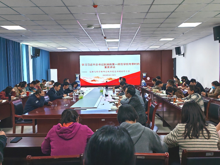 4月10号下午,生物与药学教研室教师党支部召开专题学习会,学习习近平总书记到湖南第一师范学院考察时的重要讲话。