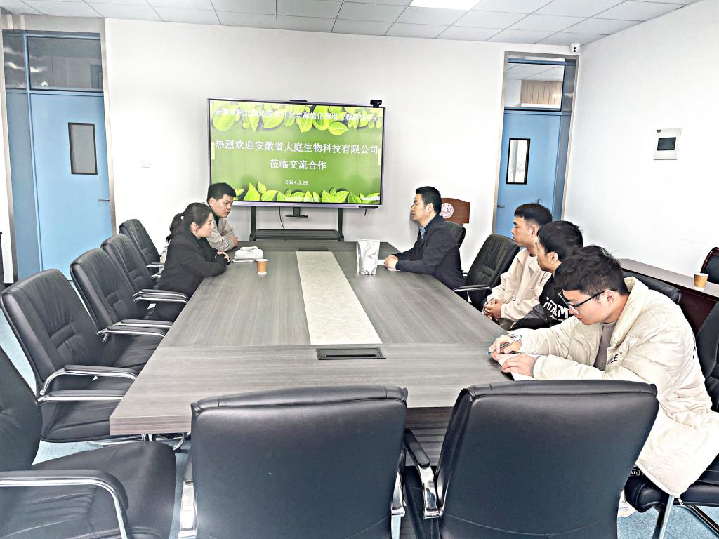 2024年3月28日,安徽省大庭生物科技有限公司董事长许嘉伟一行莅临安徽省皖北道地药材开发与高值化利用工程研究中心进行现场考察、调研并座谈。工程研究中心主任翟科峰教授及部分相关研发人员参加了座谈会。